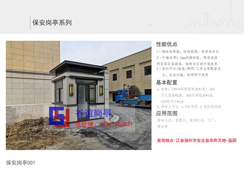 也有是尺寸稍微大一點,放在道路一邊的,這樣的小區(qū)保安崗?fù)な菃蜗虻模粗贿M,要么只出。有部分的保安崗?fù)?nèi)部還配備了小間的衛(wèi)生間。