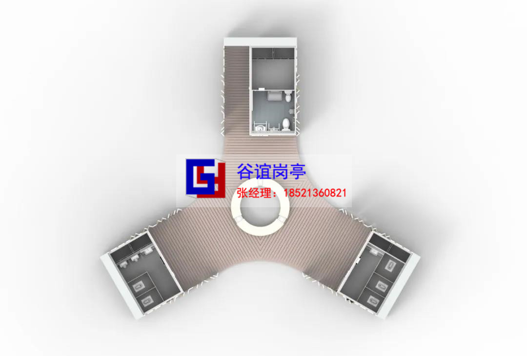 本批次公廁將統(tǒng)一采用這三個(gè)基本模塊,通過不同的排列布局方式、不同的外飾方案以適應(yīng)不同的地形及環(huán)境。